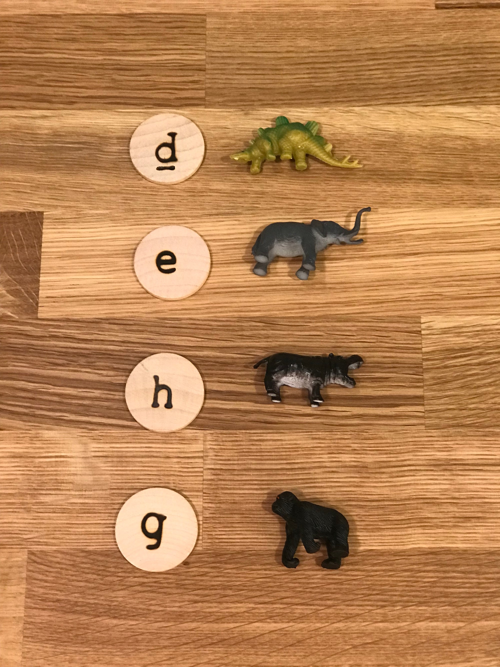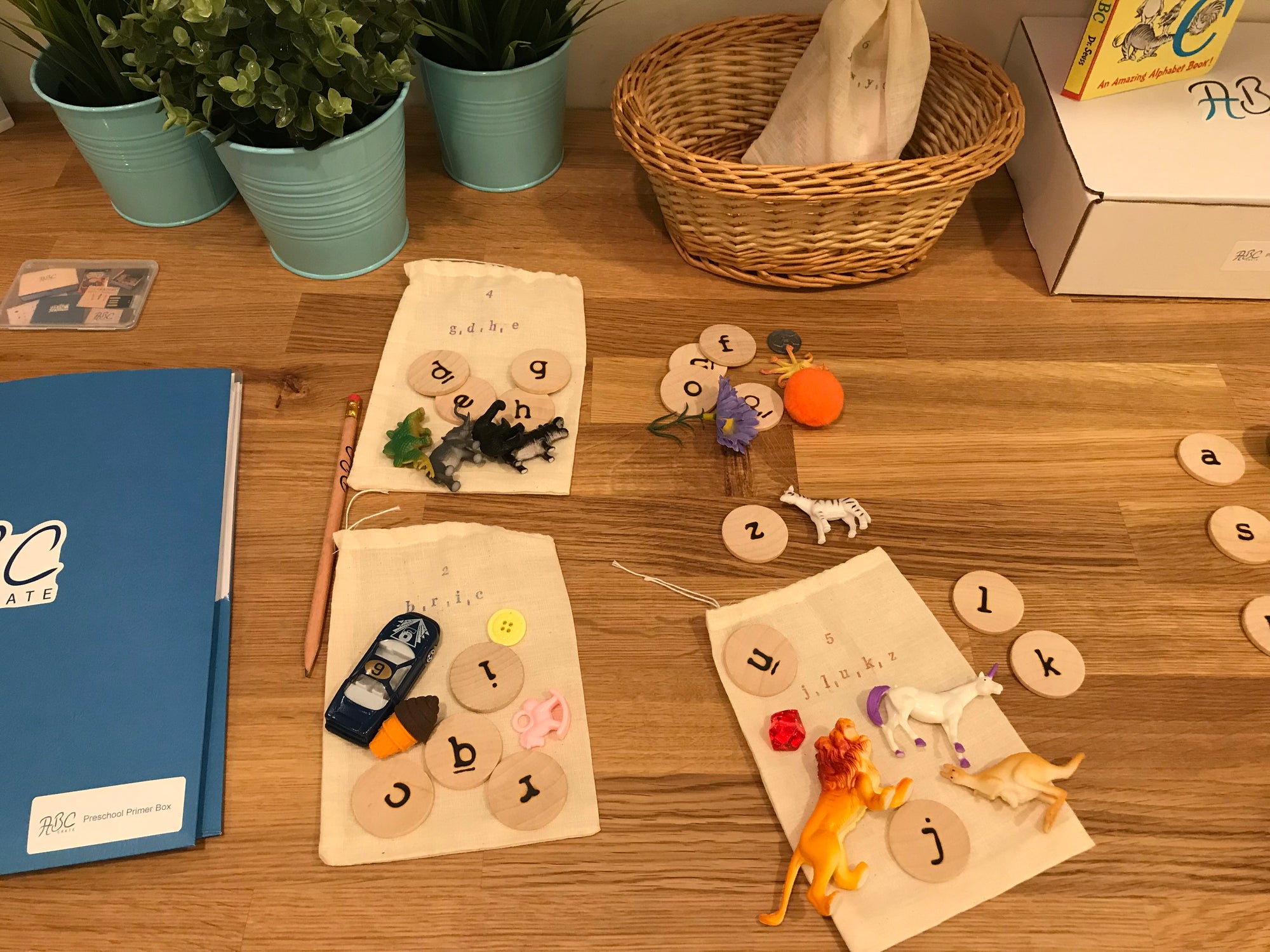 The alphabet sounds and objects kit includes beginning sound activities for all beginning sounds. This kit includes the following items: a comprehensive and easy to understand illustrated lesson plan with words to say during your lesson or presentation of the material to your child or student, 26 hand wood-burned lower case alphabet letters; “Dr. Seuss’s ABC: An Amazing Alphabet Book!” storybook, and 18 language follow up (master copy, you are welcome to copy for your use) worksheets that complement the various lessons. Sounds are sorted into 6 bags and lessons to match beginning sounds of objects to letters. The lessons and follow up activity worksheets come in a folder for easy storage. The materials come in fabric bags and a labeled box that is easy to store on a work shelf for your child or student. At an additional price, you can purchase a flash drive with a copy of the lesson plan and follow up worksheets. We are available via email at abccrate@yahoo.com for any questions. Please read the lesson plan when it arrives before presenting materials to your child/student so you are prepared.