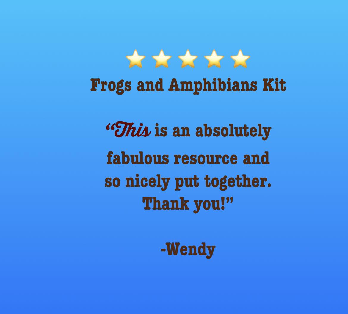 Kit Includes: Illustrated lesson plan with four different activities (8 pages including worksheets); “Tadpole to Frog, Animals Grow Up,” story book; laminated five-part frog matching cards; laminated frog sequence cards; frog sequence picture cards (eggs, young tadpole, tadpole with developed hind legs, tadpoles with all legs, and adult frog); full size laminated frog picture; 3 copies of “parts of a frog” worksheets (1 color and 2 black and white to color, you are allowed to make extra copies of these); 2 “parts of a frog” mini color sheets (for your child/student to make their own “parts of” booklets); frog color page; an animal report template; a pencil sharpener; and color pencils. Optional purchase: sequence objects.