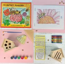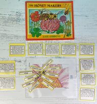 Kit Includes: Illustrated lesson plan; “The Honey Makers,” by Gail Gibbons storybook; 10 laminated tree parts definition cards; 10 laminated honeybee labels; a small bee house; a set of paints; a paintbrush; 1 honeybee color sheet (you may copy); 1 honeybee parts worksheet (you may make extra copies); a honeybee fact sheet; an insects fact sheet; an animal report template; a piece of bees wax with a wick to make a mini candle; and a box of 8 crayons.