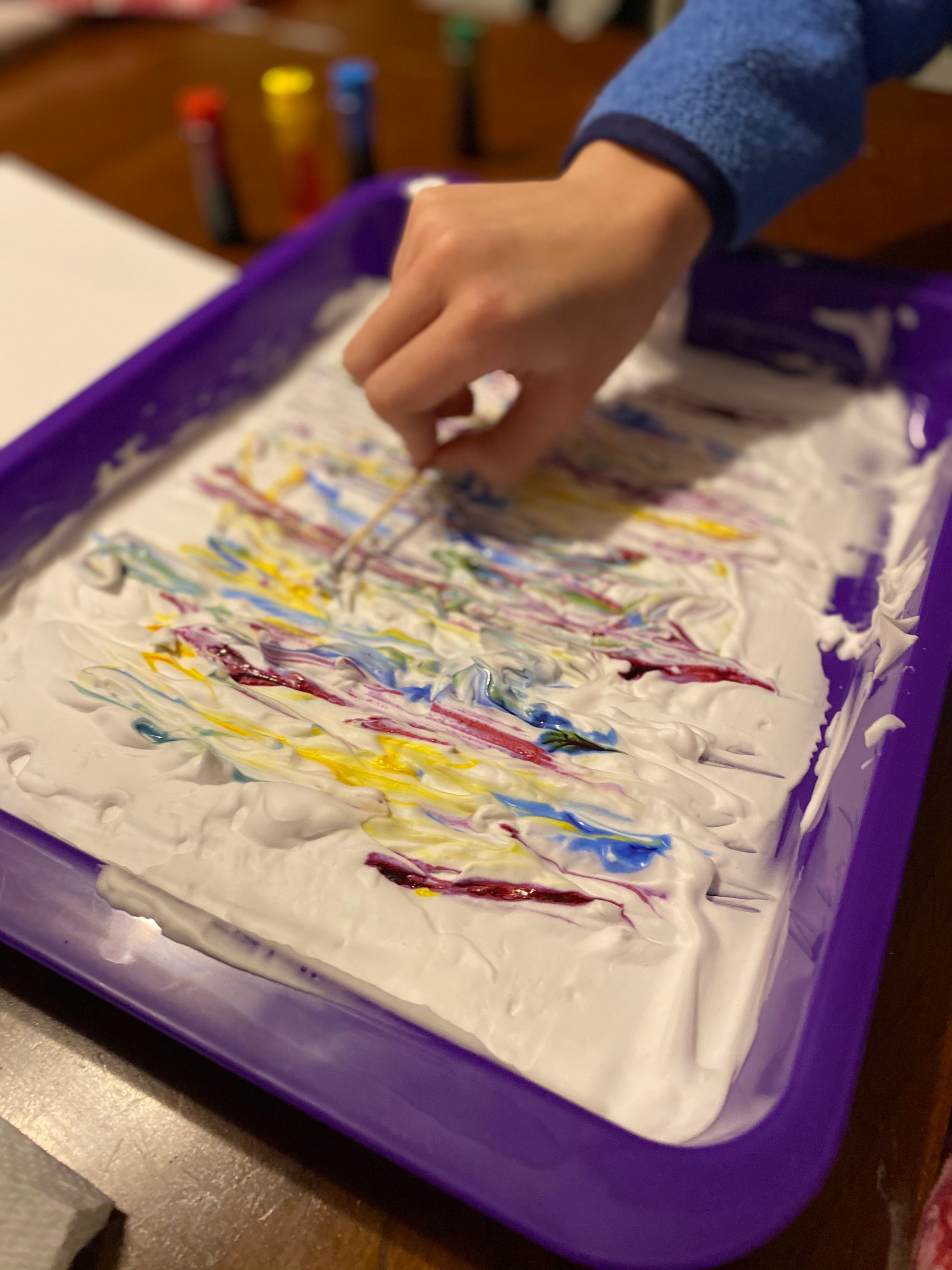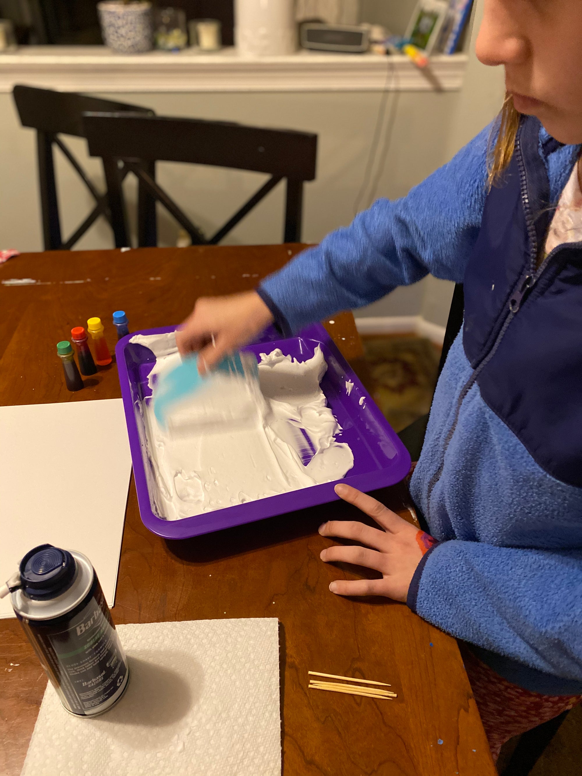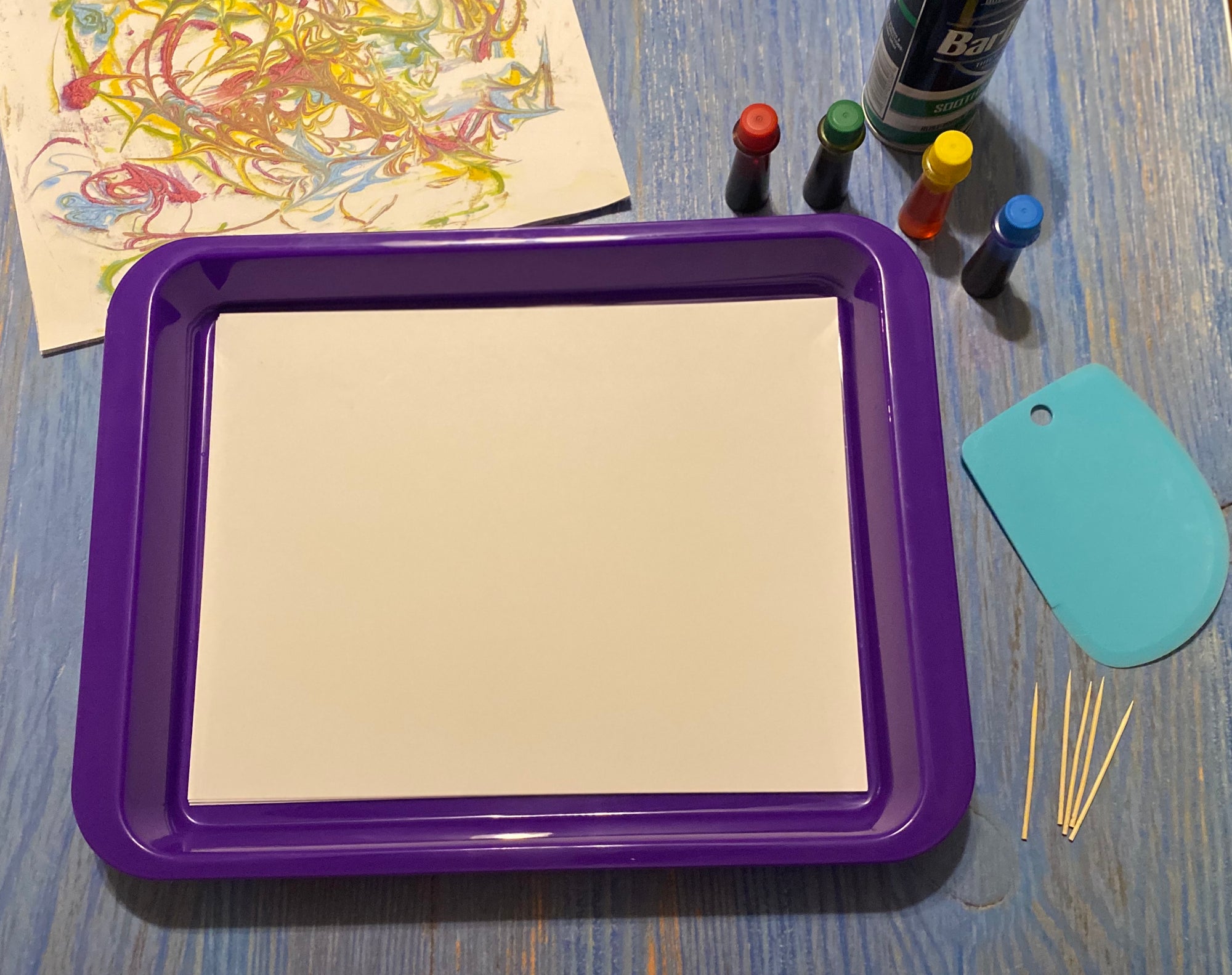 Kit Includes: Food coloring, plastic crafting tray (colors vary), craft spreader (colors vary), 5 toothpicks, “Marbles, 101 Ways to Play” slightly used book by Joanna Cole and Stephanie Calmenson or "World's Greatest Marble Games," by Susan Riley (this is based on stock); illustrated directions in a folder; 10 sheets of white cardstock paper (8 ½ by 11); a bag with 20 marbles; and shaving cream.