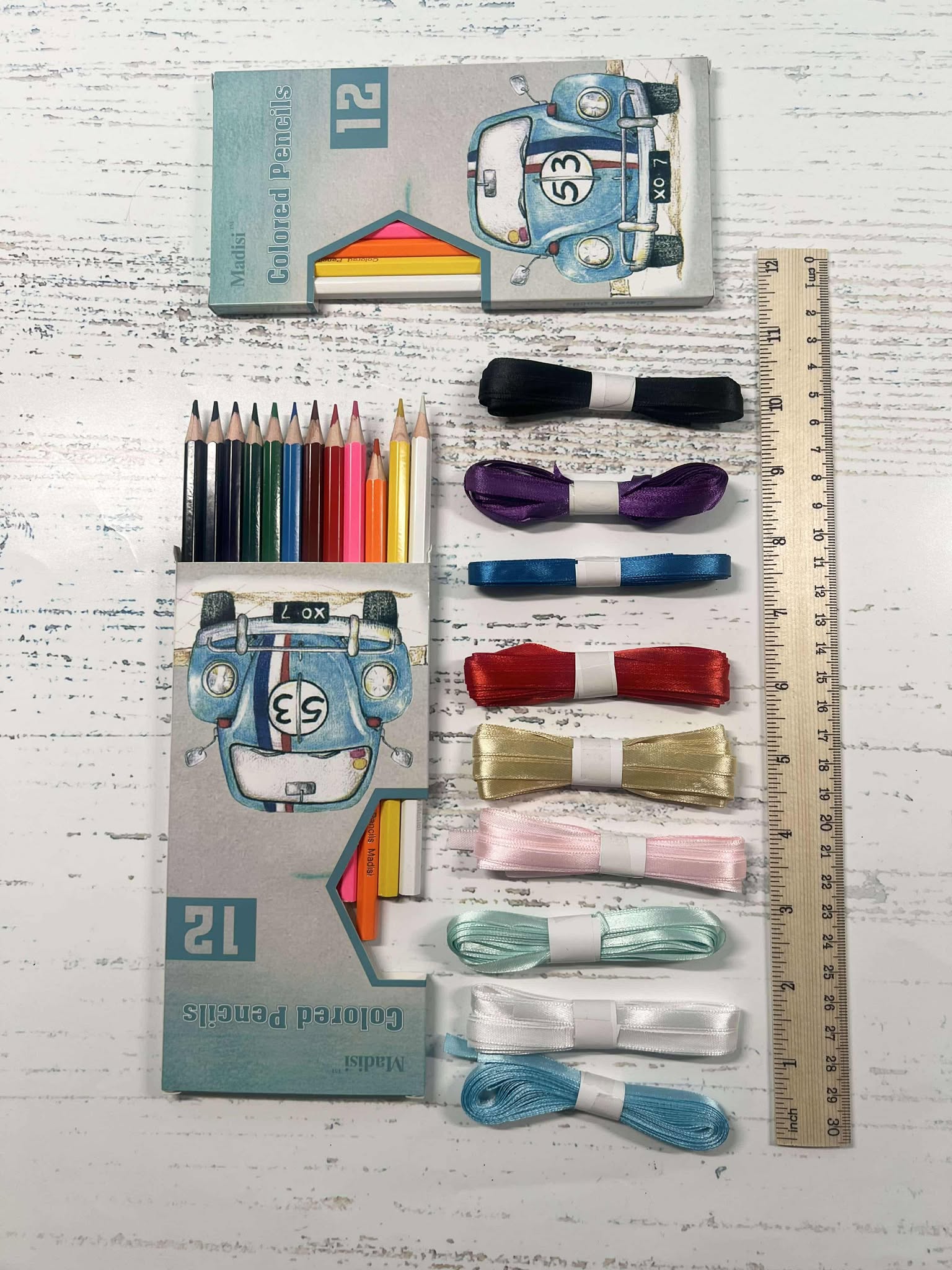 Each kit includes: A 5 x 5 hardback book with heavy duty 32 Ib. paper (different colors available on drop-down menu, the white ones are good for a custom cover), 14 sheets of acid free 6 x 6 papers (mixed and seasonal designs), 6 sheets of acid free 6 x 6 solid papers, 6 sheets of 5.5 x 8.3 paper (also mixed), 6 sticker sheets, a glue pen, 3 washi tapes and 2-6 foot ribbon bunches (different colors and designs in each kit-great for putting between two papers), 2 sets of shaped scissors (different designs in each kit), 1 pair of kids scissors, a set of colored pencils, 4 gel pens (different in each kit), a design idea sheet, and a ruler for measuring paper to cut. Comes in an easy to store cardboard box.