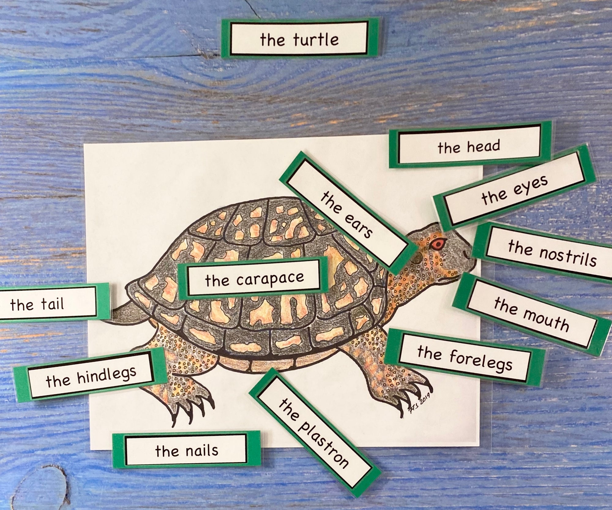 Creator: Lesson Plan and follow up work prepared by: Caroline Moulsdale, Owner and Lead Educational Consultant of ABC Crate, LLC, with Credentials in Early Childhood Education (Preschool and Kindergarten) from CMTE/NY, 2001; Elementary Education I (grades 1stto 3rd) and II (grades 4thto 6th) from Delaware Institute for Montessori Education, 2015; BS from The University of Delaware; Lead Teacher in Montessori Education for 18 years, and Parent Education Director for 8 years. Turtle artwork originals by Fiona To Smith.