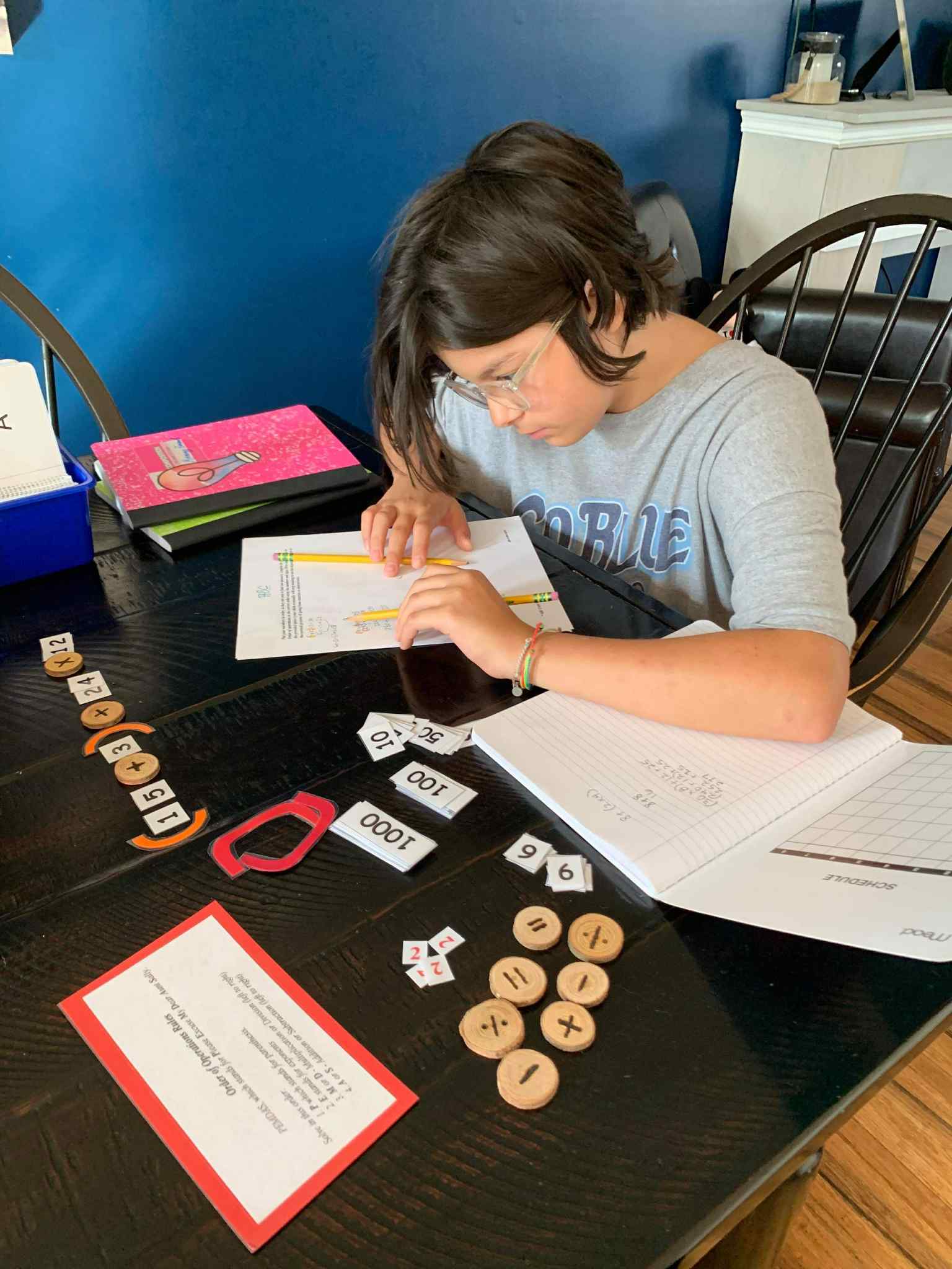 The Order of Operation Kit includes the following: step by step illustrated instructions on how to teach/present the order of operations to your student/child in a folder, worksheets that progress in difficulty as the child works, wooden hand burned symbols (2 +’s, 2 –‘s, 2 x’s, 2 ÷’s , and 1 =), an answer key, 2 sets of laminated numbers (1-9 units, 10-90 tens, 100-900 hundreds, and 1000-9000 thousands), 4 red laminated exponents (2), laminated parenthesis, laminated brackets, and a laminated copy of the rules of Order of Operations.