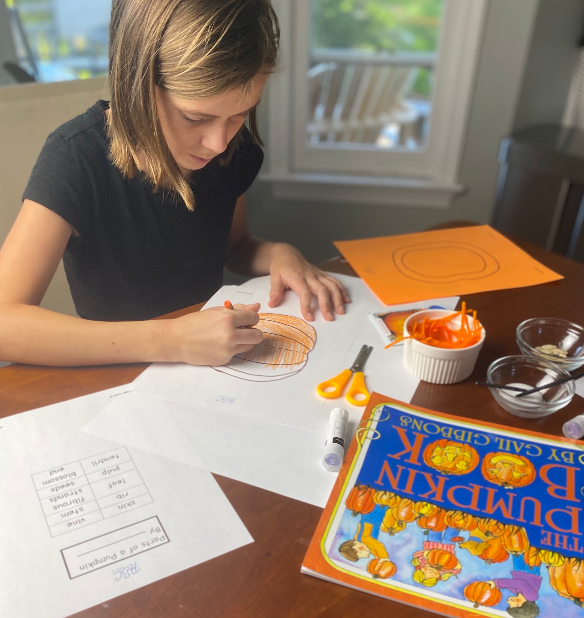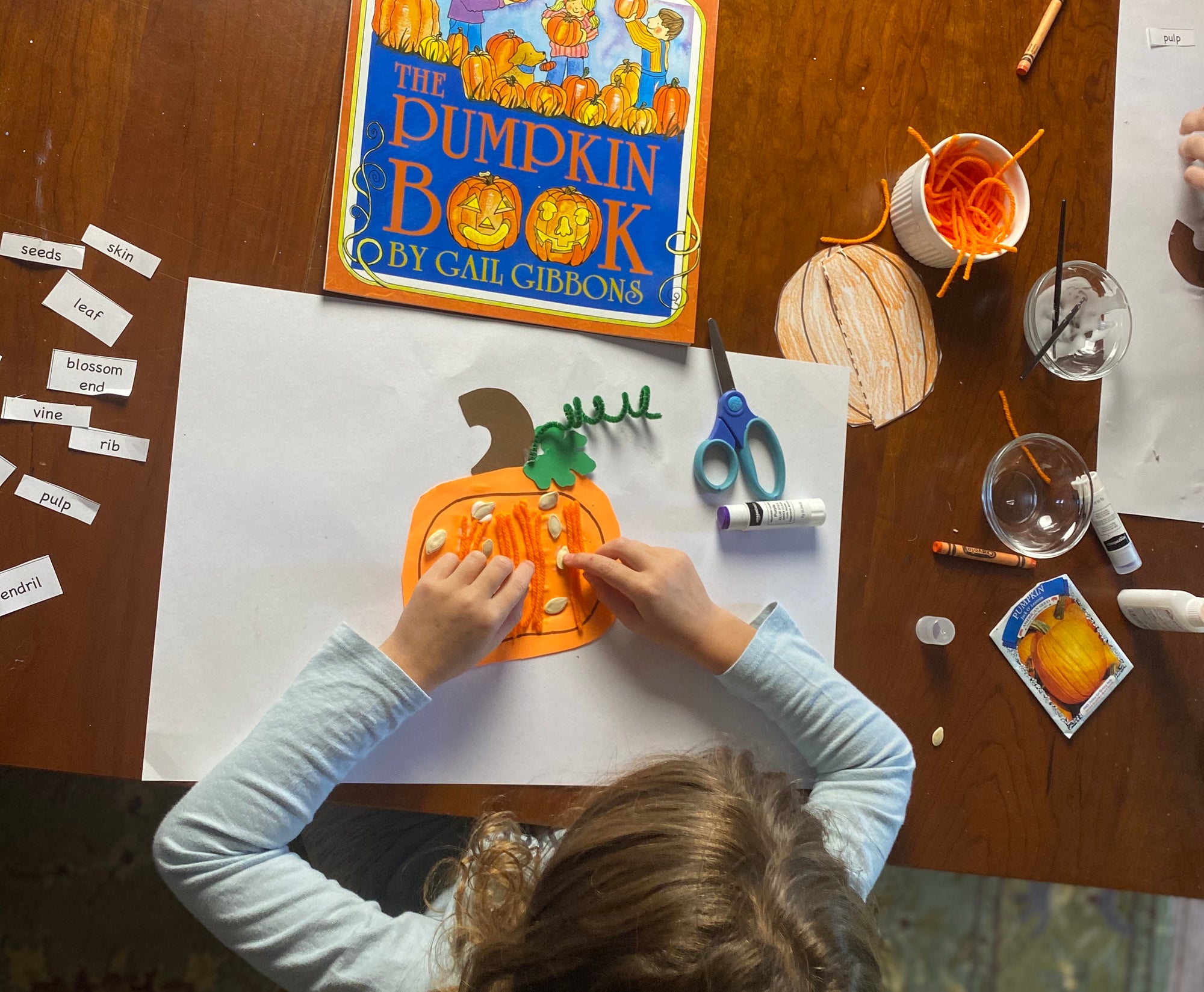 Group Kit Option: A group kit covers supplies for 8 children and include "The Pumpkin Book" book, an illustrated lesson plan and answer key, 8 -9 x 12 inch papers, 4 glue sticks, an extra set of craft supplies for each student, 8 paper ramekins, 2 boxes of crayons, 2 1.25 ounce bottles of wet glue, and 8 glue brushes. Choose from the drop-down menu.