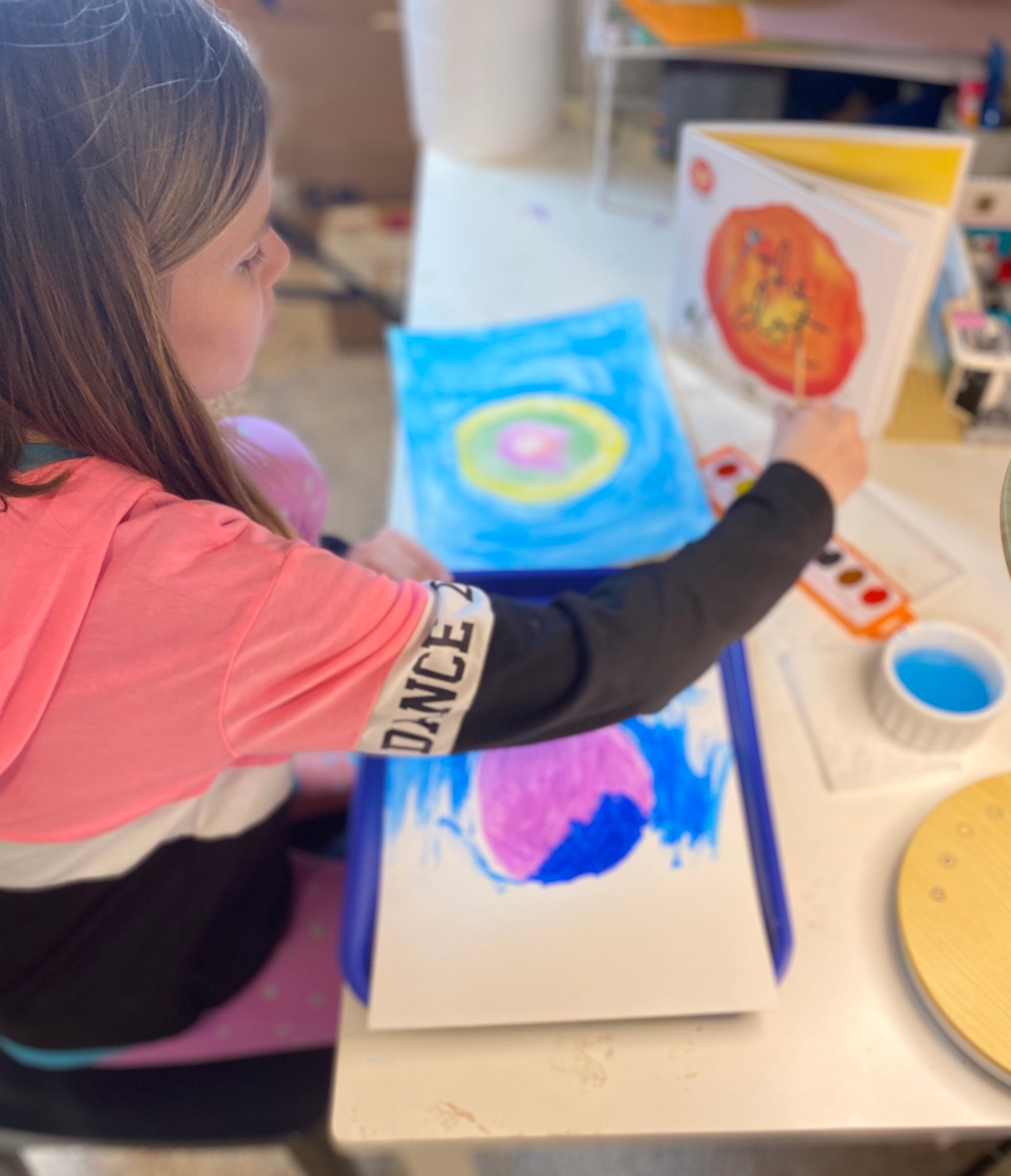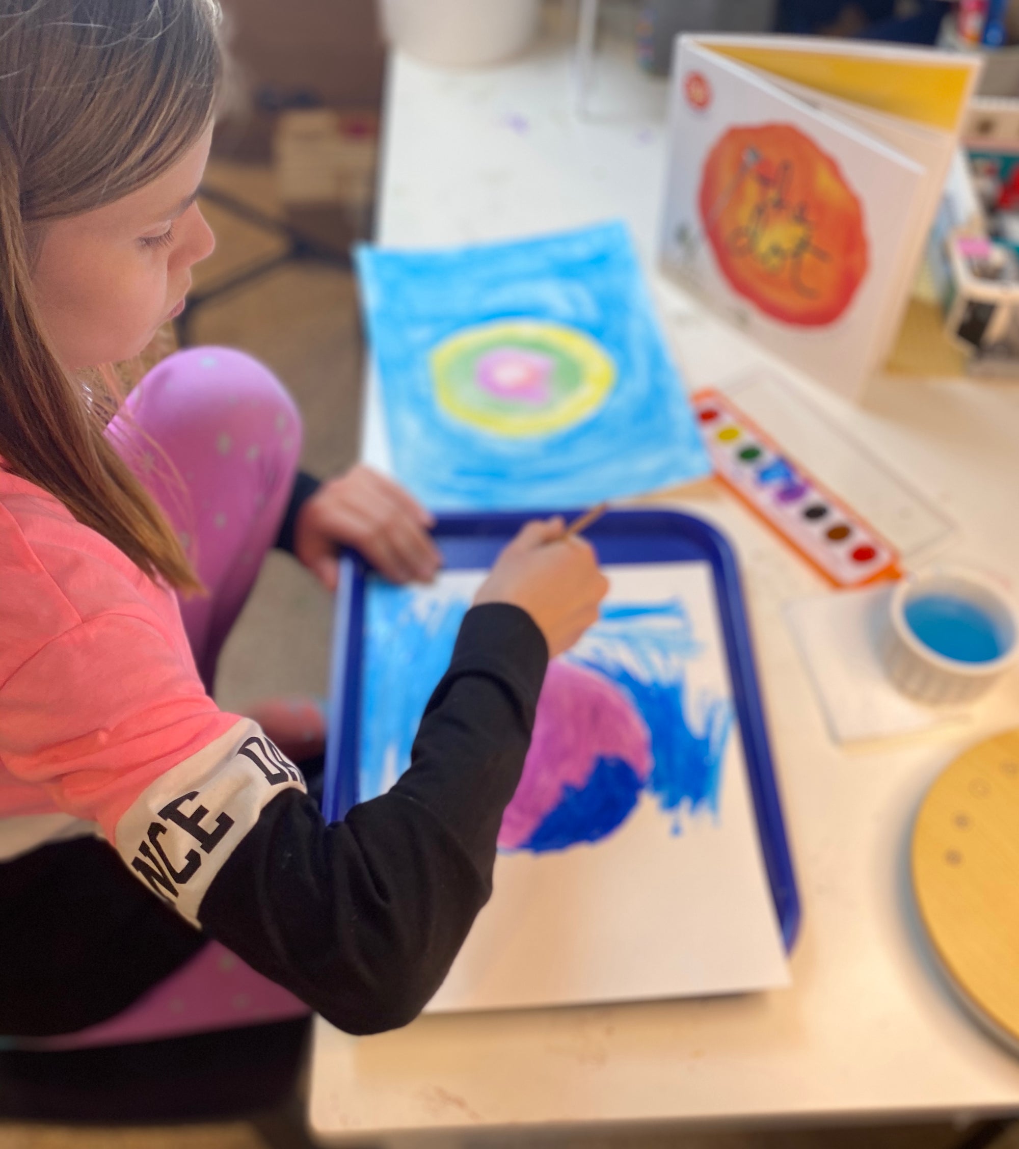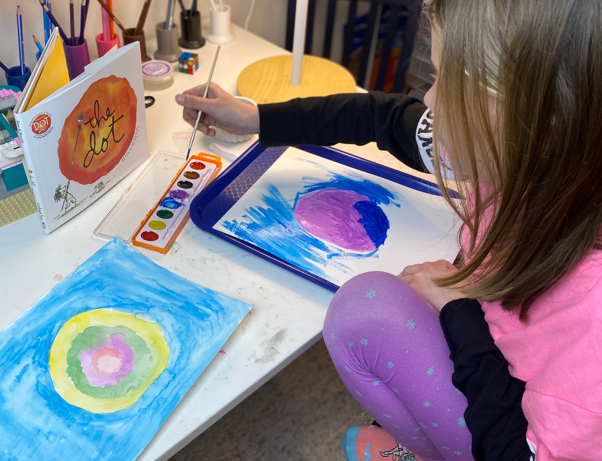 Kit Includes: "The Dot,” by Peter Reynolds hardback book; illustrated directions in a folder; 5 sheets of watercolor paper (9 by 12); a set of watercolors with 8 colors and a brush; and a water ramekin (colors vary). From ages pre-school to 6thgrade, for 18 years I taught watercolor in my Montessori classes uses the beloved book, “The Dot”. This book will inspire your students/children as well as give you a new perspective on what to expect when teaching. Enjoy a fun arts and crafts kit and one of my favorite lessons to teach! This kit is available alone or in the arts and crafts subscription.